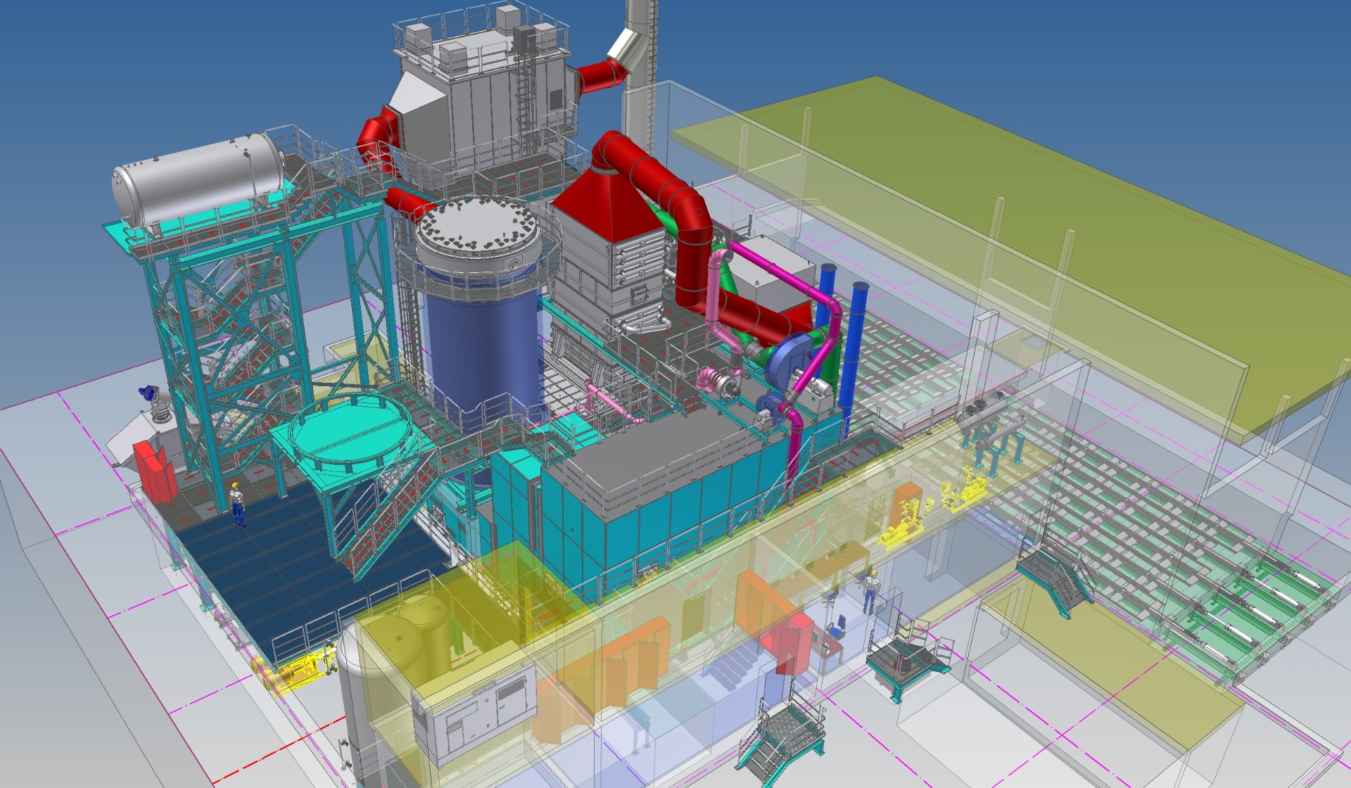 - Celkové a čiastkové dispozičné riešenia technologických celkov (3D)